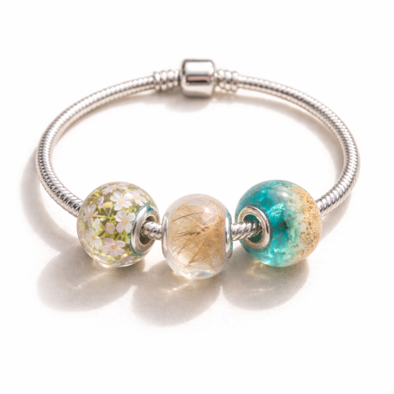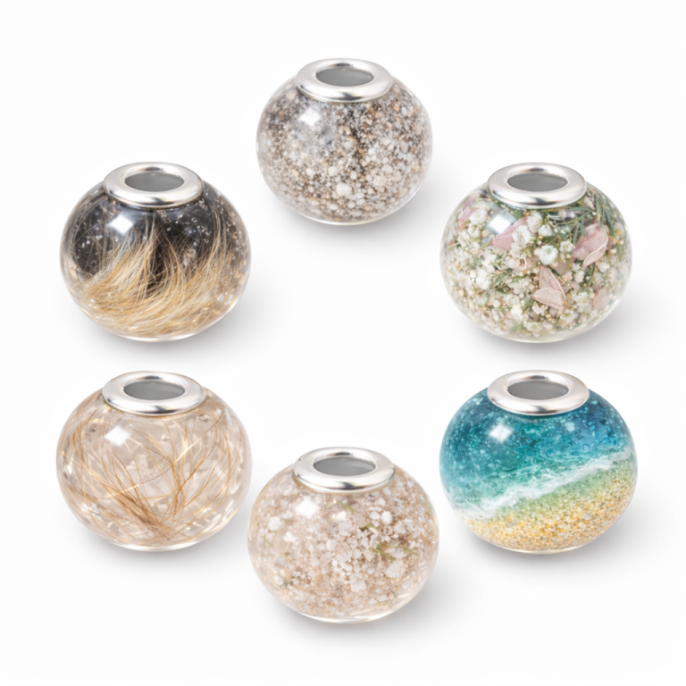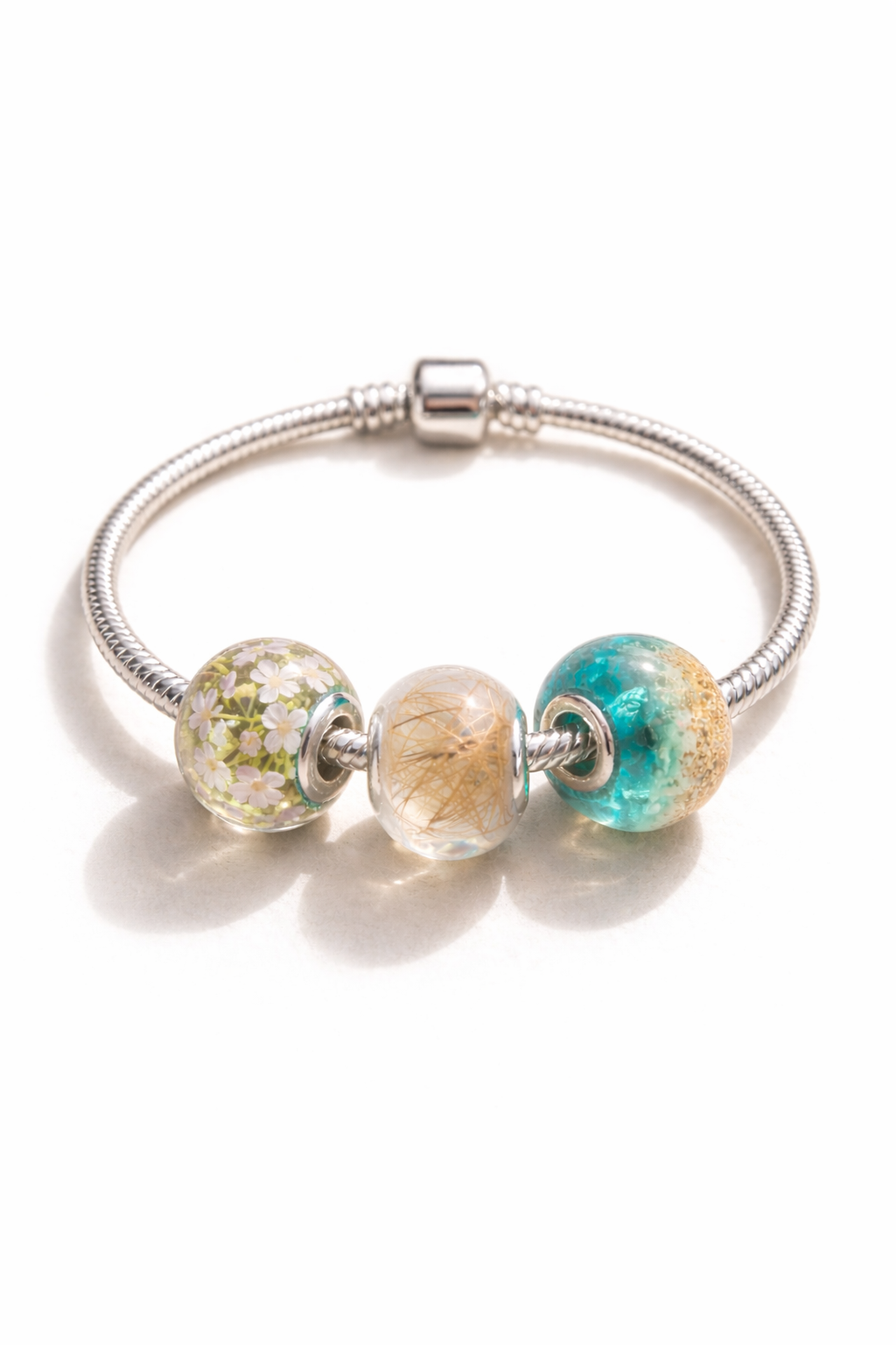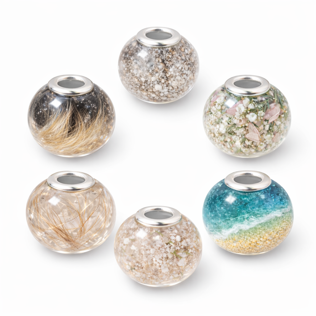 Mit diesem DIY Charm Kit kannst du deine ganz persönlichen Erinnerungen in einzigartigem Schmuck verewigen. Gestalte deine eigenen Charm-Perlen und trage besondere Momente immer bei dir – ob Muttermilch, Blüten aus dem Hochzeitsstrauß, Sand vom Lieblingsstrand, Haare deines Babys oder andere kleine Erinnerungsstücke.